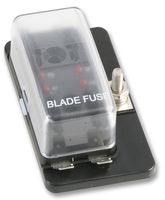 Multi (4) fuse holder for ATOF fuses (up to 30A). comes with LED indication of failed fuses. 6.35mm spade outputs. Fuse series rated for upto 32VDC |